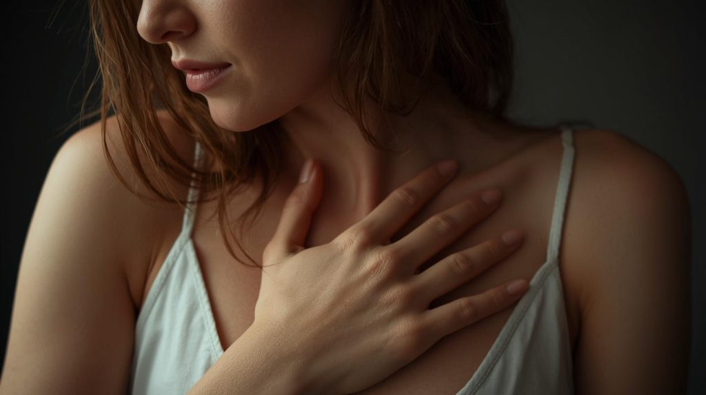 - Was hilft? Verlängere bewusst dein Ausatmen (z. B. 4 Sek. ein, 6 Sek. aus). Eine Hand auf dem Brustbein schenkt durch Wärme sanfte Beruhigung.